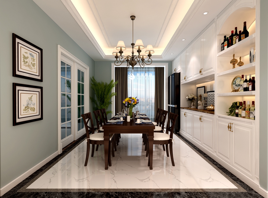 ▲西安(ān)魯班裝(zhuāng)飾出品普華淺水灣四居室160平米簡美設計金小(xiǎo)磊設計師主筆(bǐ)——餐廳設計效果圖