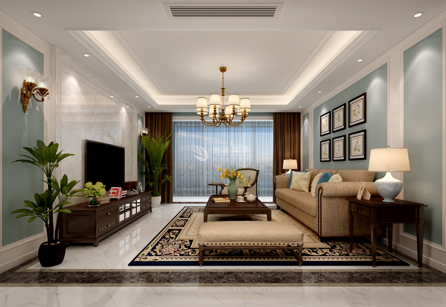 ▲西安(ān)魯班裝(zhuāng)飾出品普華淺水灣四居室160平米簡美設計金小(xiǎo)磊設計師主筆(bǐ)——客廳設計效果圖